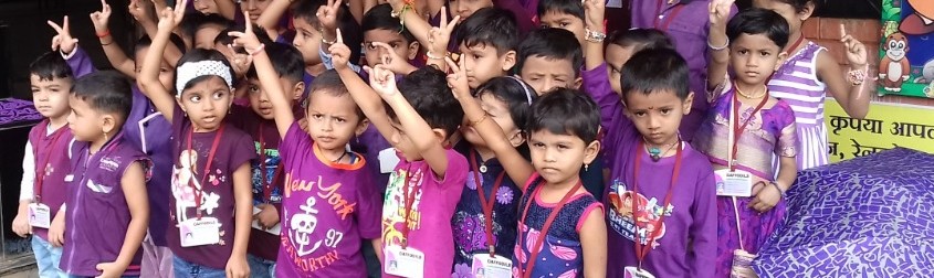 Physical development through Yoga & Exercise. Flash Cards, encyclopedia bits, mathematical dot cards and computer programs helps in Mental development